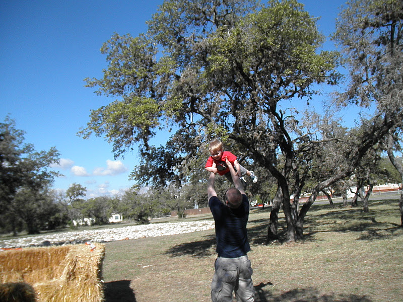Chris and I finally made a trip to the pumpkin patch. Liam was in love with this hay maze. Liam loved all the pumpkins. We enjoyed a nice time hunting pumpkins and running around. Liam kept us busy with his running and exploring. This year was a little better than last. He was not exploitive. Liam even made it into the corn bin. He does have some texture issues and I thought for sure this was not going to happen but he loved it. His favorite part was the maze. There was only one spot were he would go if Daddy wasn't there. It had a large fake spider. We all really enjoyed the time together as a family!